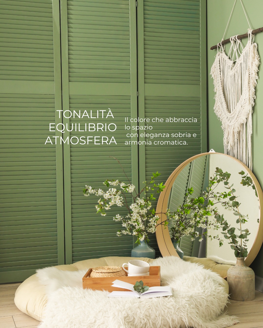 È una finitura eco-friendly a base d’acqua con bassissimo contenuto di VOC, profumata e ad alta copertura.